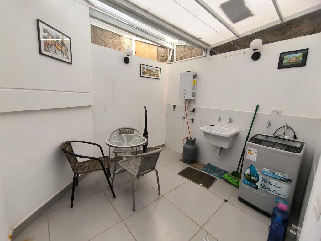 Zona de cocina, Lavadora, Cocina, Microondas, Hervidor eléctrico, Utensilios de cocina, Horno, Productos de limpieza, Cafetera, Mesa de comedor, Copas de vino